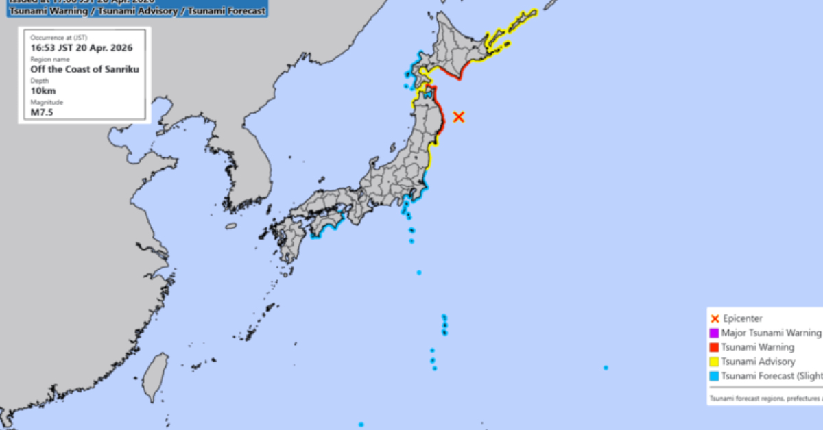 In a statement posted on X, Prime Minister Sanae Takaichi urged residents in the warning zones to evacuate at once to higher ground, evacuation buildings or other safe locations.
