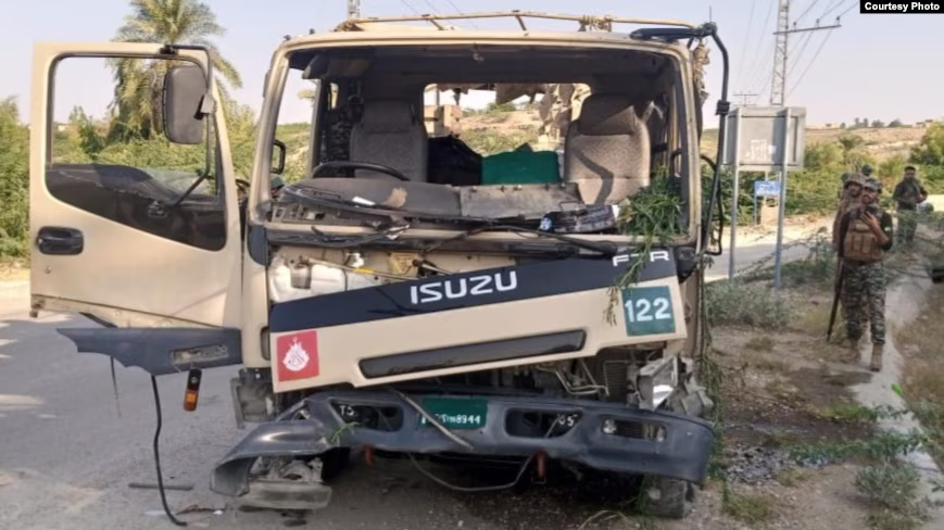 The attack took place in the Jani Khel area of Bannu district, when a motorcycle-borne suicide bomber rammed his vehicle into a military convoy.