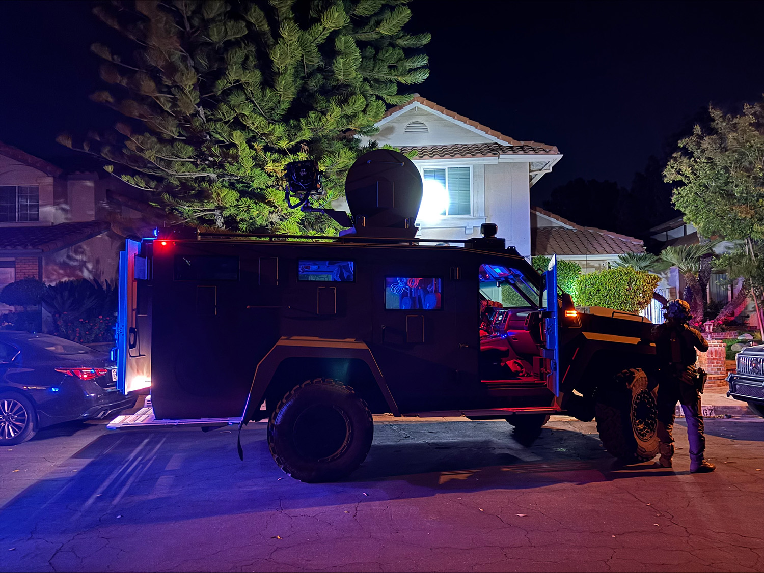 - Authorities seized $100,000 in cash, 14 firearms, and three armored vehicles.