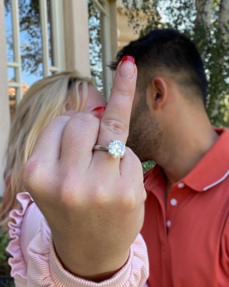 In a short video uploaded on Britney’s verified account on Instagram, Britney shows off her new ring. Sam Asghari is by her side and when he asks her if she likes her engagement ring, she joyfully says “Yes.”