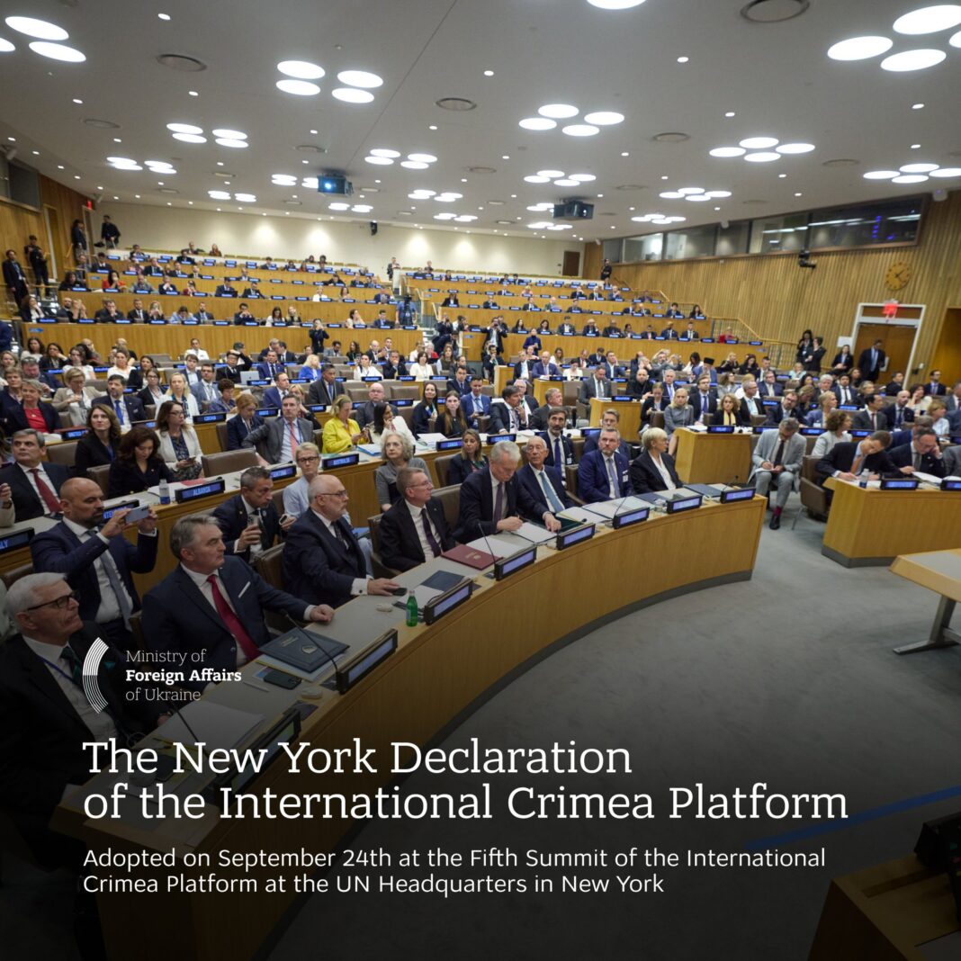 States and international organizations participating in the Fifth Summit of the International Crimea Platform adopted the “New York Declaration” on Wednesday, Sept. 24, 2025, at United Nations Headquarters, reaffirming support for the UN Charter and Ukraine’s internationally recognized borders, the Ministry of Foreign Affairs of Ukraine said.