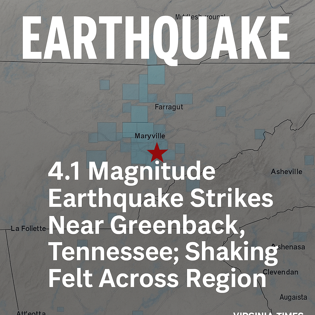 A magnitude 4.1 earthquake rattled parts of Eastern Tennessee on Saturday morning, with its epicenter located approximately 13 miles northeast of Greenback and about 30 miles south of Knoxville, according to the U.S. Geological Survey (USGS).
