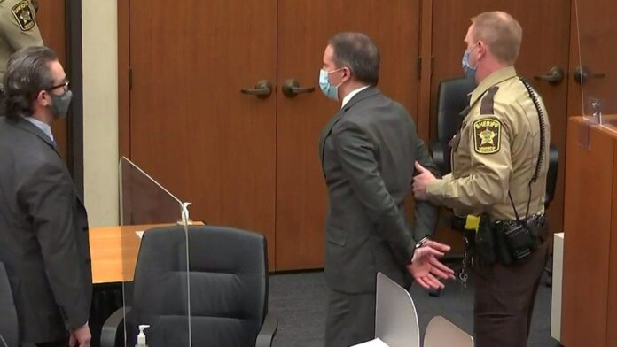 Derek Chauvin is handcuffed after being found guilty on all three counts, including second-degree murder.