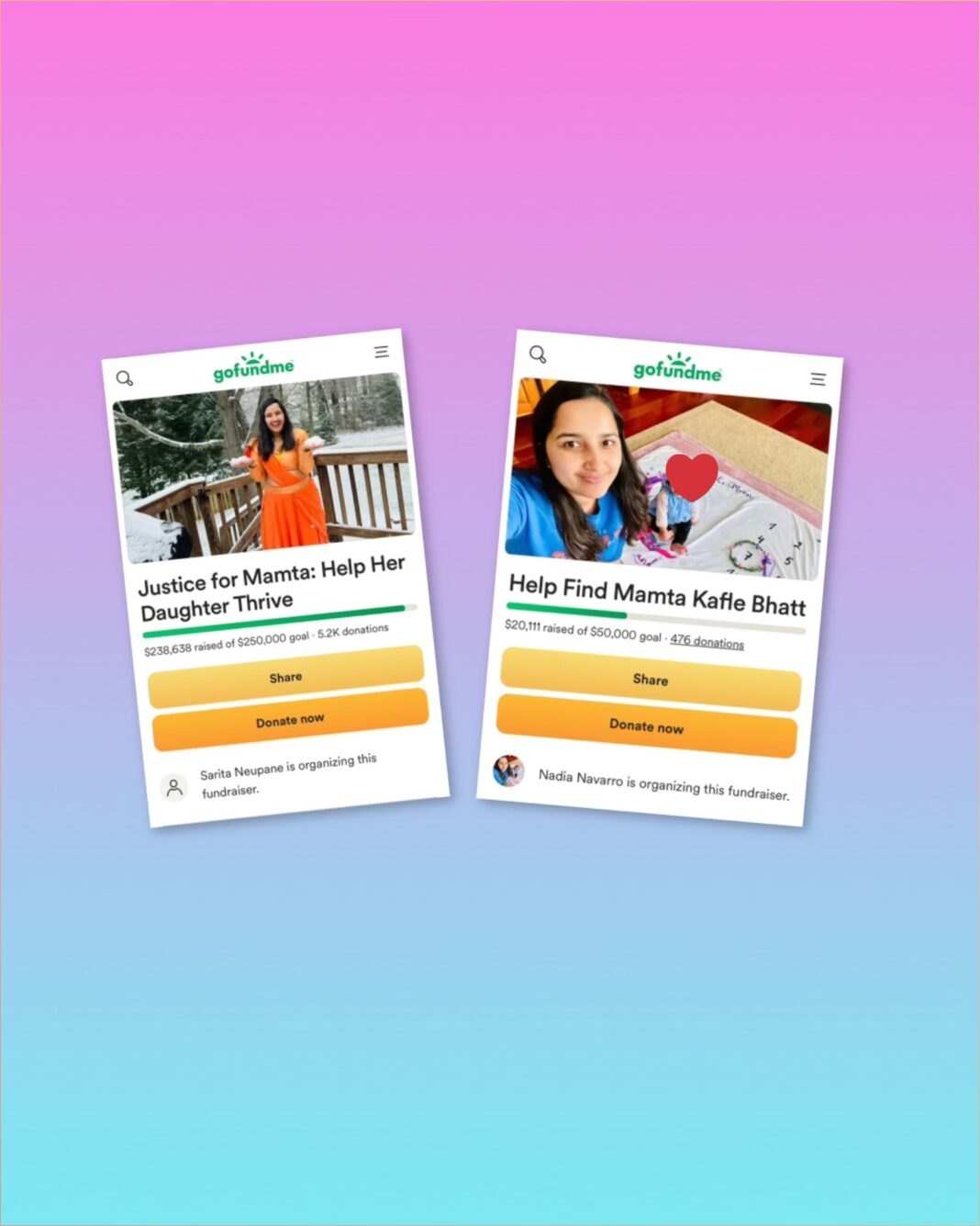 Nadia Navarro, a close friend of Mamta, was the first to launch a GoFundMe campaign. Initially, the funds were directed toward search efforts and purchasing supplies for volunteers. As the situation evolved, Nadia updated the campaign twice to reflect changing objectives.
