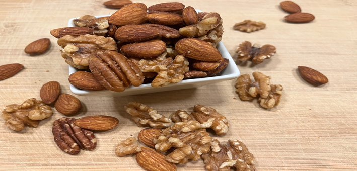 - Take the trays out of the oven. You will smell a great aroma when the nuts are ready.