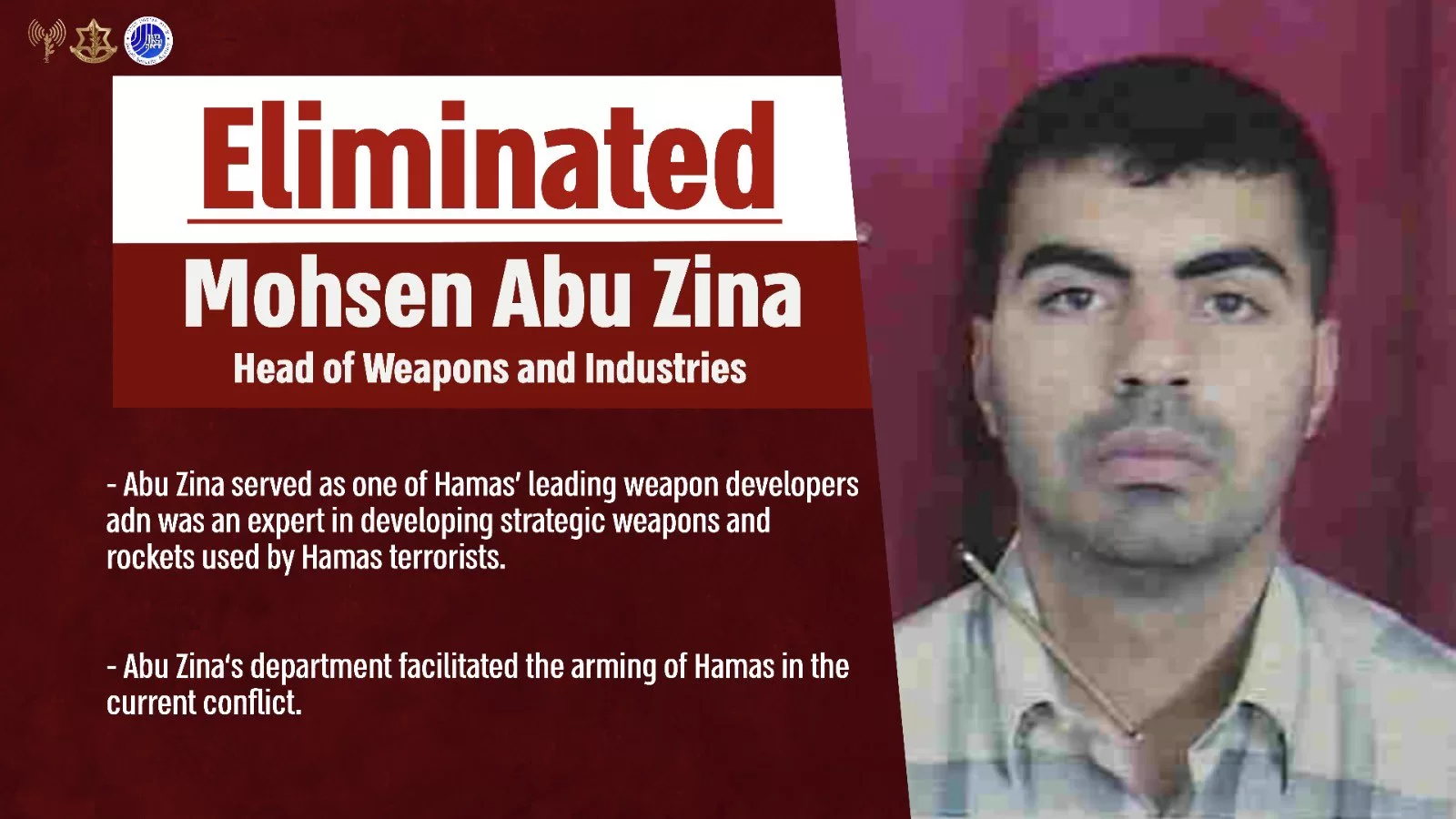 In a significant development in the Middle East, the Israel Defense Forces (IDF) and the Israel Security Agency (ISA) confirmed on Wednesday that they have eliminated Mohsen Abu Zina, Hamas’ Head of Weapons and Industries.