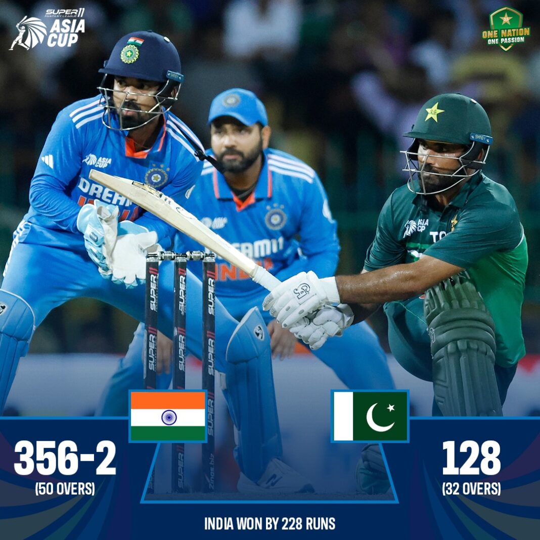 In the Super 4 match of the Asia Cup 2023, India emerged victorious over Pakistan with a massive margin of 228 runs in a thrilling showdown at Sri Lanka’s R Premadasa Stadium on Monday. The match was defined by stellar performances, most notably Virat Kohli’s remarkable century and KL Rahul’s triumphant return.
