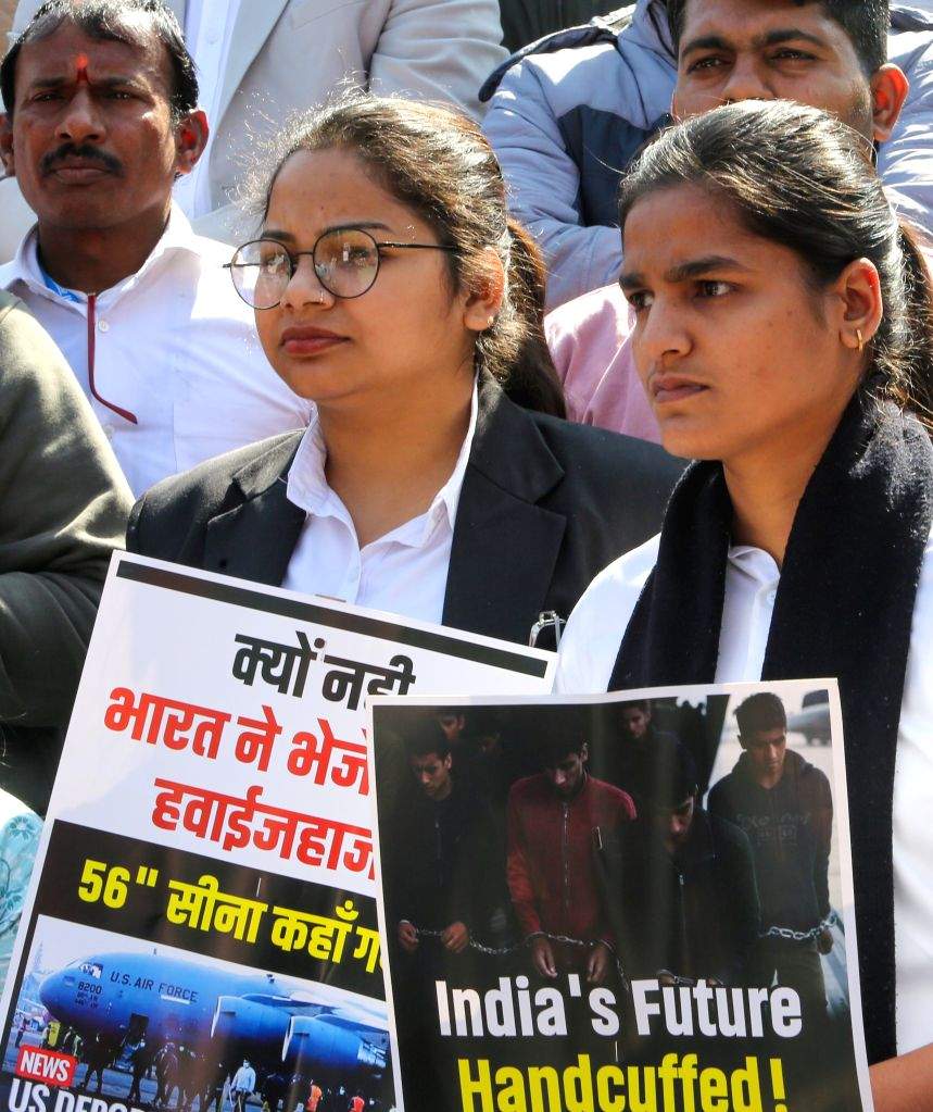 The protest was triggered by reports that a group of Indian deportees, who were sent back from the United States, faced harsh and degrading conditions during their deportation process. According to accounts from deportees and advocacy groups, individuals were: