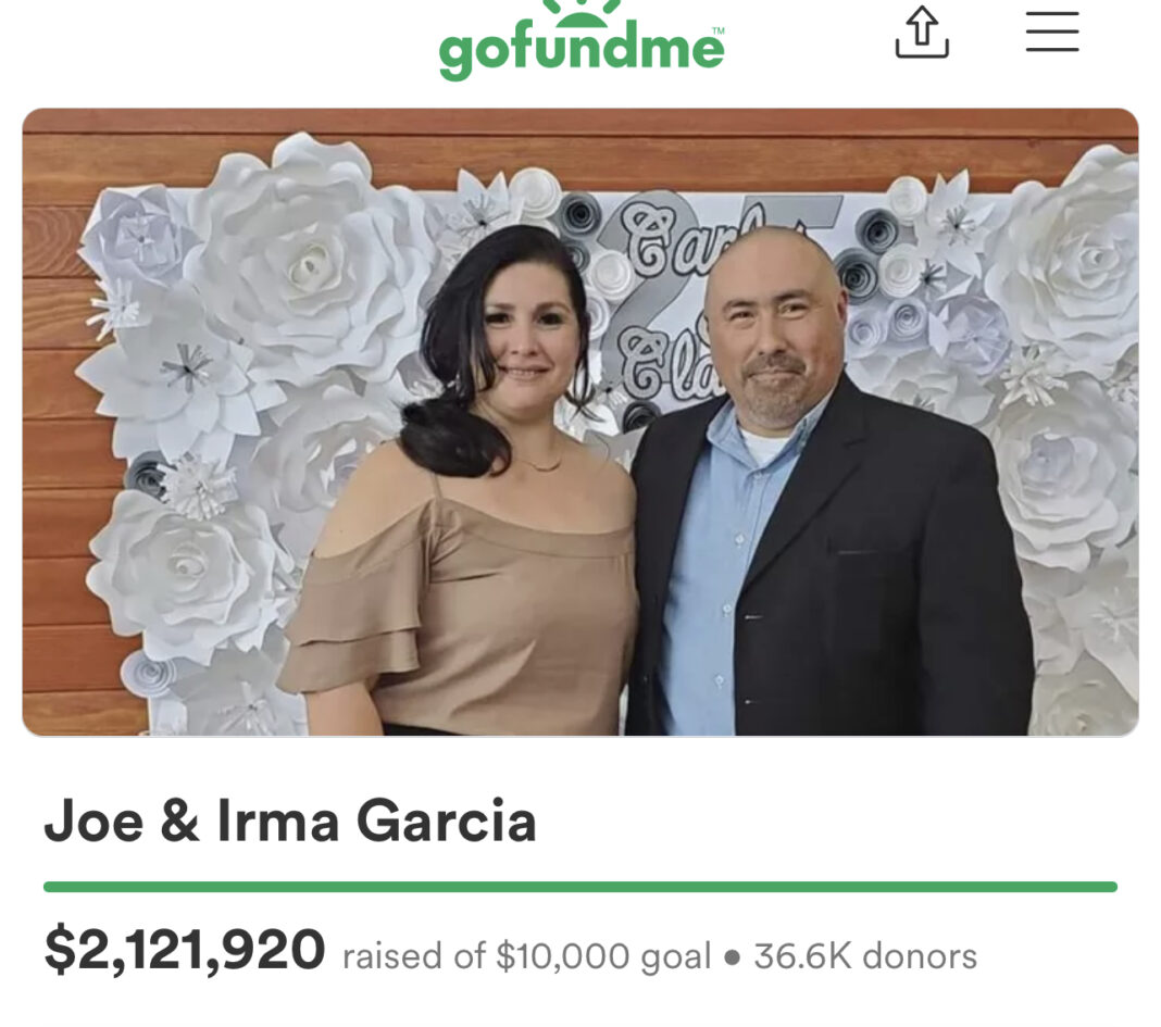 Joe & Irma Garcia Gofundme page organizing by Jamie & Debra Austin has been raised $2.1M as of Friday morning.