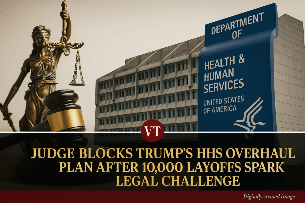 A federal judge on Tuesday blocked the Trump administration from implementing a controversial plan to restructure the U.S. Department of Health and Human Services (HHS), halting an initiative that aimed to lay off 10,000 employees and dismantle key public health infrastructure.