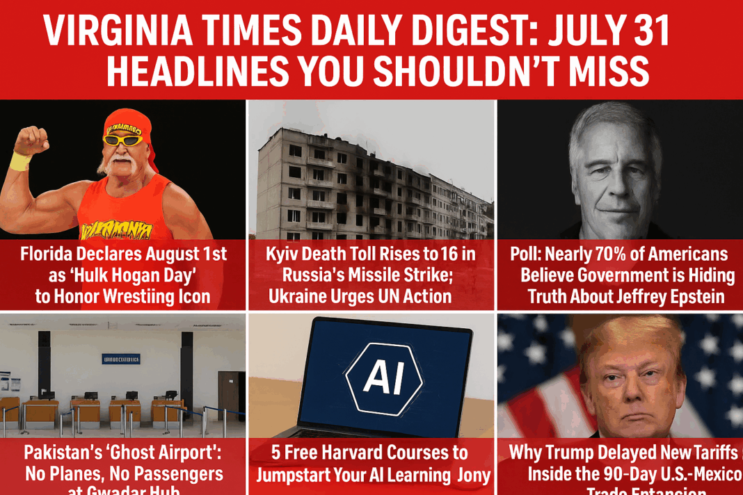 Catch up on the major headlines making waves on July 31, 2025. From a state holiday in Florida honoring Hulk Hogan to deadly missile strikes in Kyiv, here are today’s most important stories curated by the Virginia Times editorial desk.