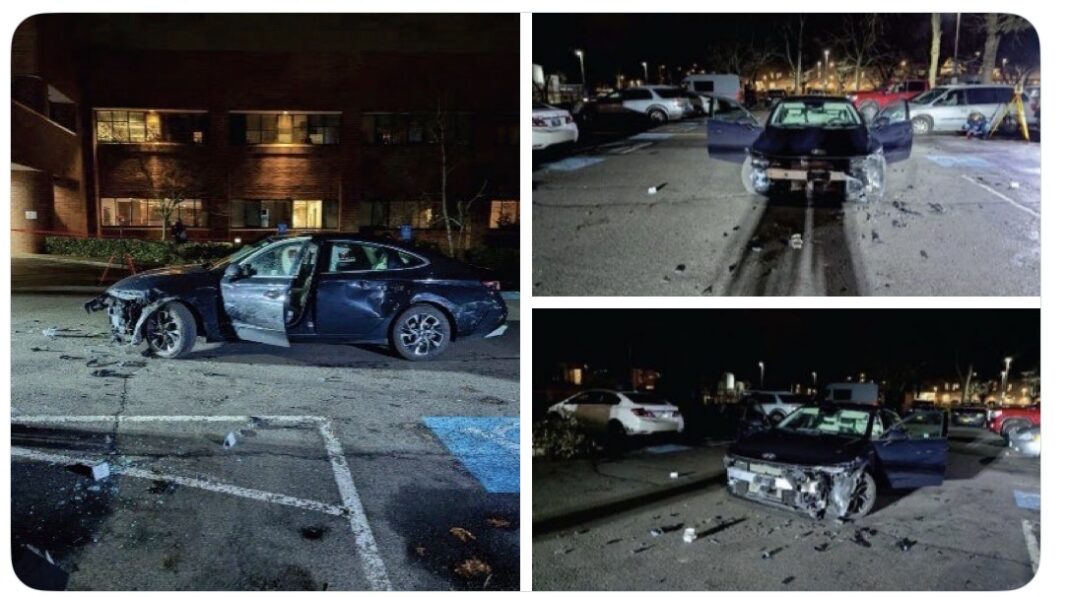 The complaint describes extensive damage of the vehicle, which included a torn front bumper, destroyed headlights, and dents to multiple panels and doors.