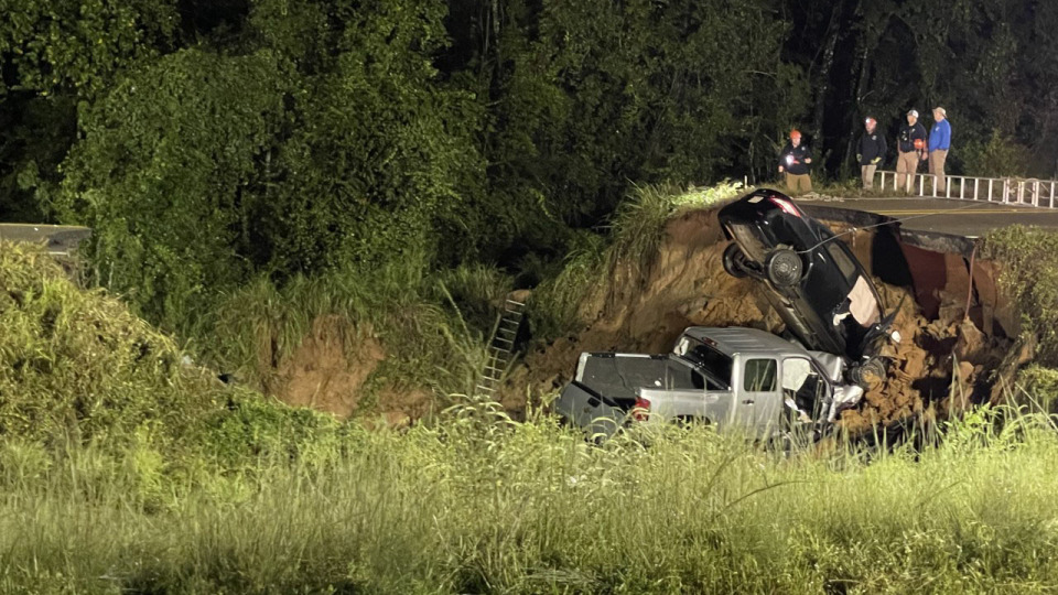 Torrential rain from Hurricane Ida may have caused the roadway to collapse, Mississippi highway patrol police said. Drivers may not have seen the highway, some 60 miles northeast of Biloxi was impassable causing cars to be “stacked on top”, officials added.