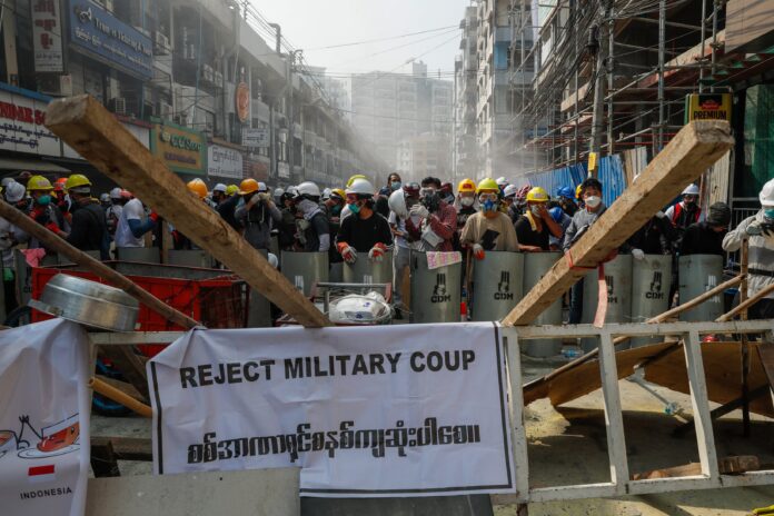 (GNB Desk): Myanmar police have cracked down on anti-coup protesters using stun grenades, tear gas and firing into the air, killing at least six people in the bloodiest action since the military seized power four weeks ago.