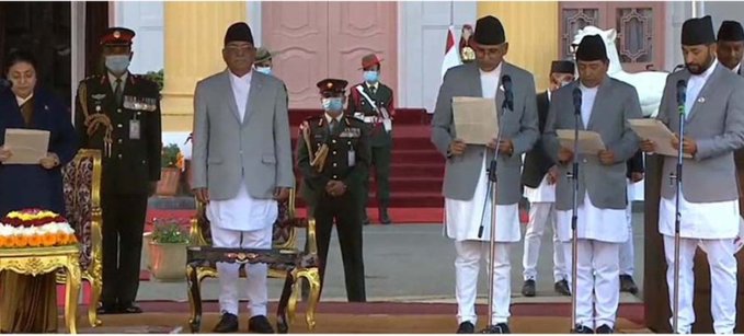 Pushpa Kamal Dahal ‘Prachanda’ took oath as Prime Minister. Similarly, seven other ministers also took the oath. After Dahal took oath as Prime Minister, three Deputy Prime Ministers, and four ministers without portfolios took the oath of office and secrecy.