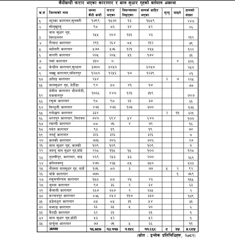 At the height of the unrest, breakouts took place in 35 districts across juvenile rehabilitation centers and correctional facilities, according to INSEC report. The attempts at escape were fatal. According to officials, 25 people were injured and nine people died during the breakouts. In the midst of the chaos, the deaths happened as prisoners tried to escape overcrowded facilities.