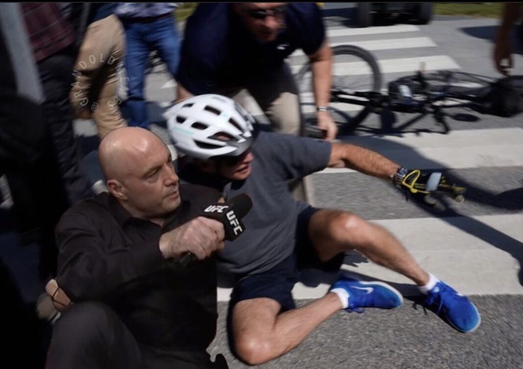 In a video posted by a Twitter user, Secret Service members swung into action to help the president get back up after he took a tumble off his bike.