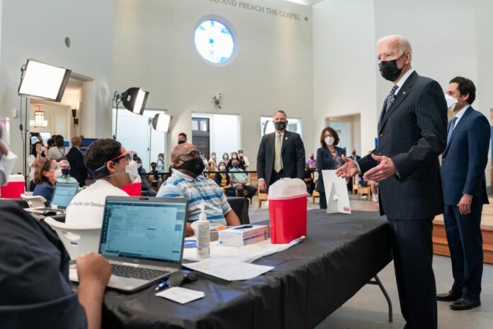 Before announcing that states should open vaccine eligibility to all adults by April 19, President Biden visited a COVID-19 vaccination site in Alexandra, Virginia.