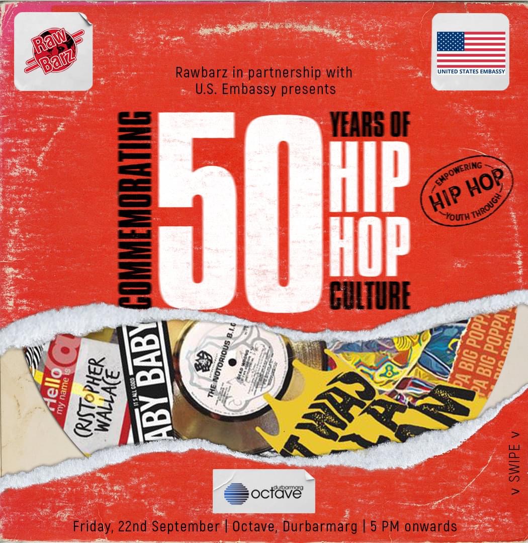 Raw Barz, a platform for promoting hip-hop culture in Nepal, hosted a grand event to commemorate the 50th anniversary of hip-hop culture on Friday, September 22, 2023, at Octave Durbarmarg. The event was organized in partnership with the U.S. Embassy, Nepal, and featured performances by local and international artists, as well as a panel discussion on the history and impact of hip-hop.