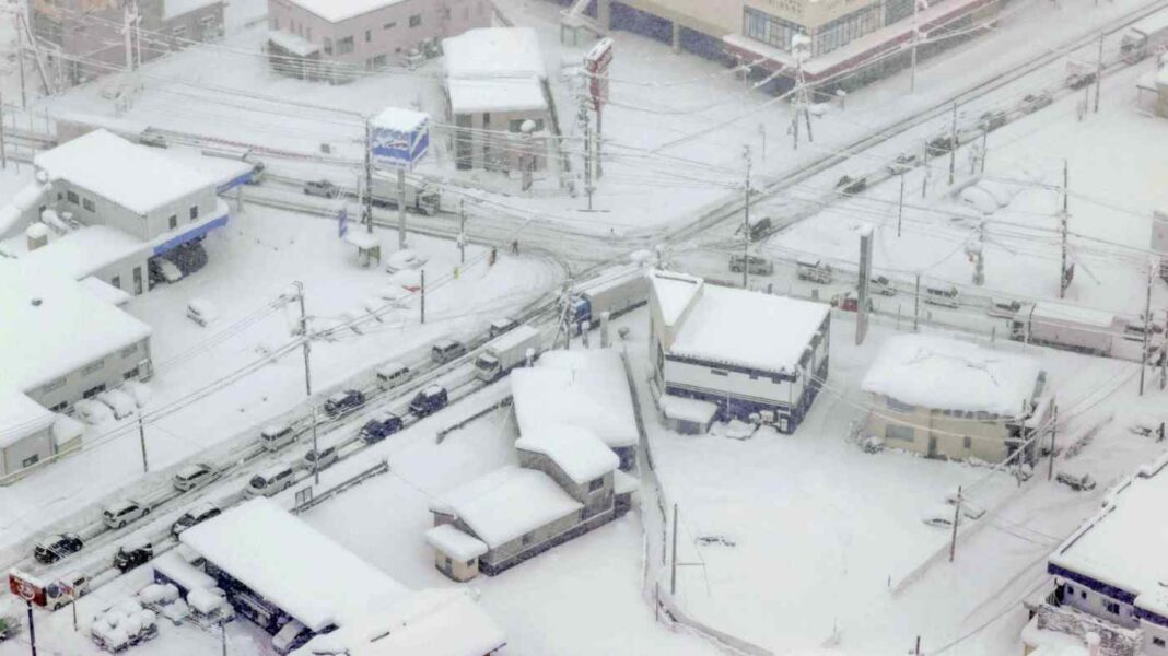 According to the Japan Meteorological Agency, Hikone in Shiga Prefecture saw 68 centimeters of snow accumulate while Asago in Hyogo Prefecture got 71 cm in a 24-hour period through early Monday, both the most ever since such statistics started being compiled, reports Kyodo news agency.