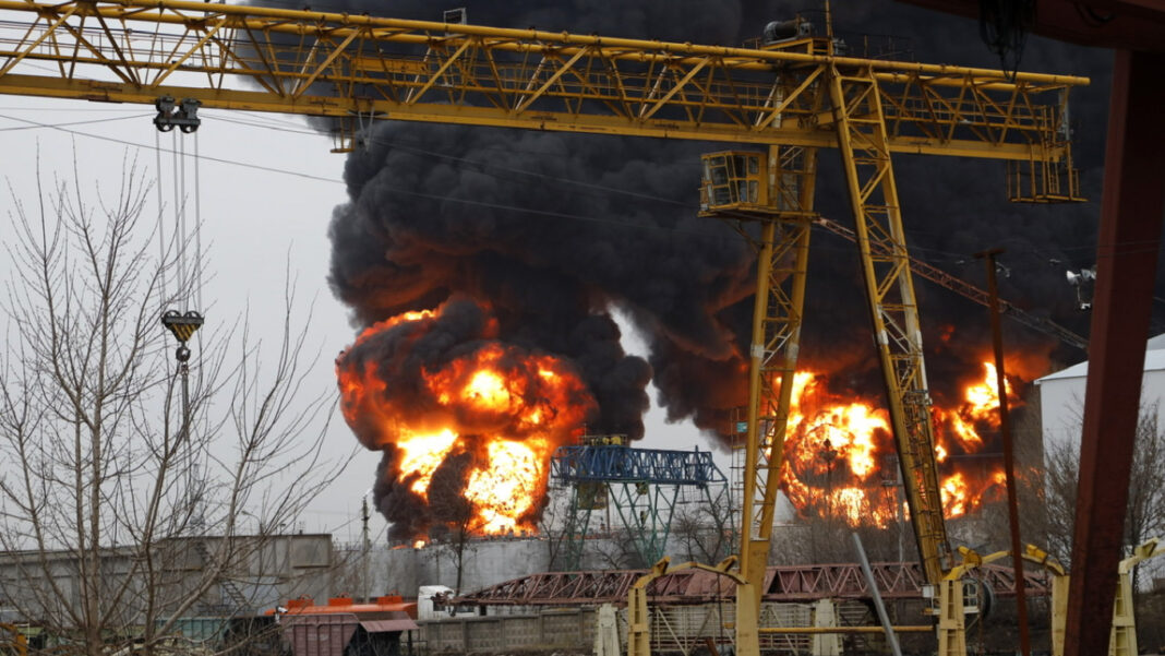 An oil storage facility is on fire in the Belgorod region of Russia after what the Region’s governor said was an attack by two Ukrainian military helicopters