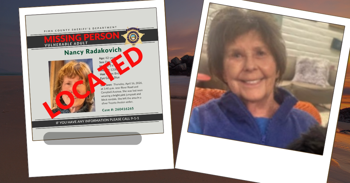 In a post on Pima County Sheriff’s Department, the agency said, “Nancy has been located.” But the attached missing-person notice referred to Nancy Radakovich, an 82-year-old vulnerable adult who had been reported missing earlier that day. A separate post from the department identified Radakovich by name and said she had been found.