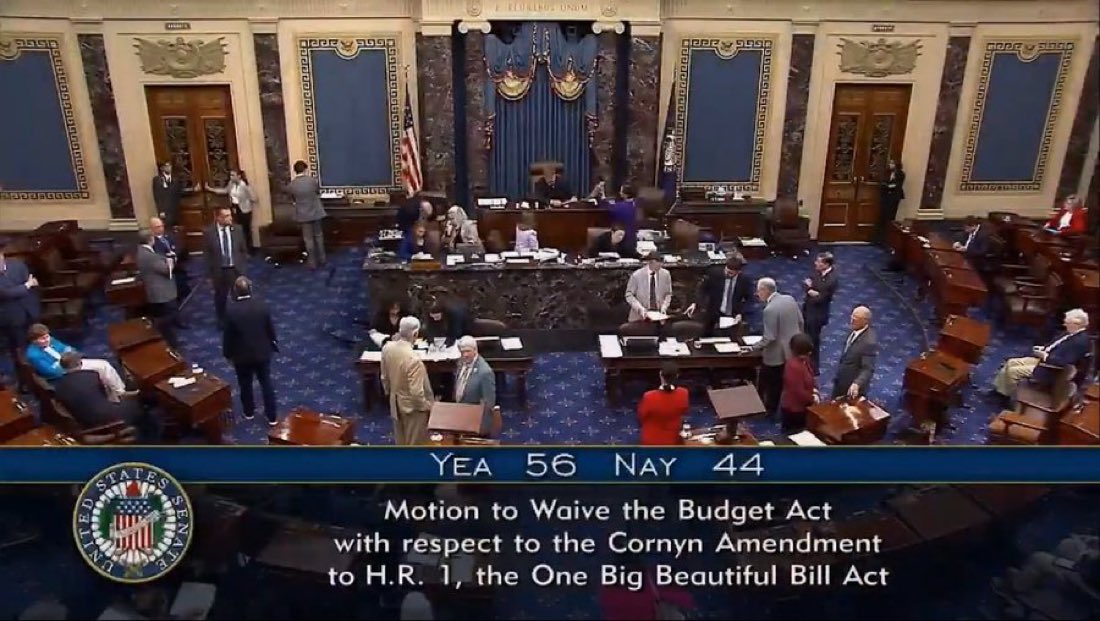 🚨NEW: The Senate just failed a vote (56-44) on President Trump’s OBBB to remove Medicaid benefits from illegal aliens.