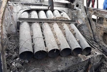 Videos shared on social media showed a burning car, apparently hit by one of the rockets. The car’s remains were covered in debris and its tyres had melted.