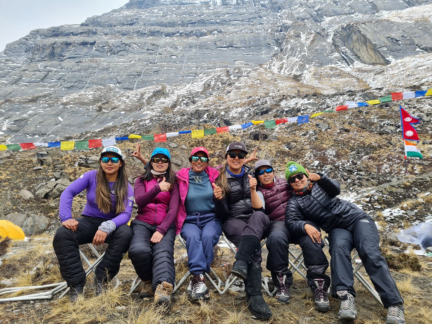 Purnima Shrestha, Sharmila Shyangtan, Dawa Phuti Sherpa, Dawa Yangjung Sherpa, Pasang Lhamu Sherpa Akita, and Maya Sherpa became the first Nepali women the top of the mountain on Friday afternoon.