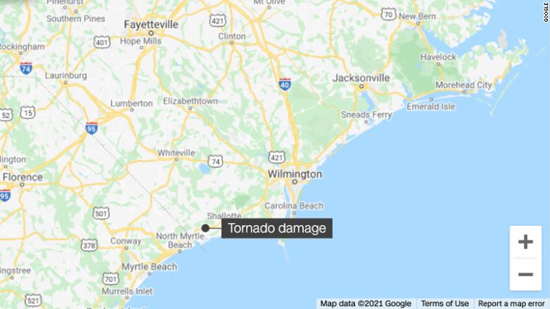 The tornado hit the Ocean Ridge Plantation area in Brunswick County, North Carolina, at about 11:50 p.m. Monday night, Brunswick County officials said.