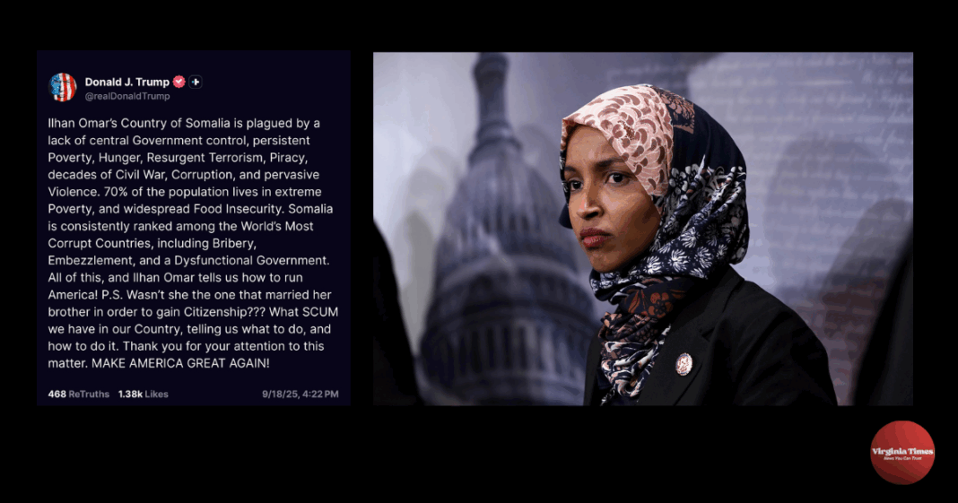 President Donald Trump, speaking to reporters aboard Air Force One on Thursday, called for Rep. Ilhan Omar to be expelled from Congress — and even deported — after a GOP effort to censure her failed by a single vote this week. Trump’s comments followed days of partisan fighting over Omar’s social-media activity after the assassination of conservative activist Charlie Kirk.