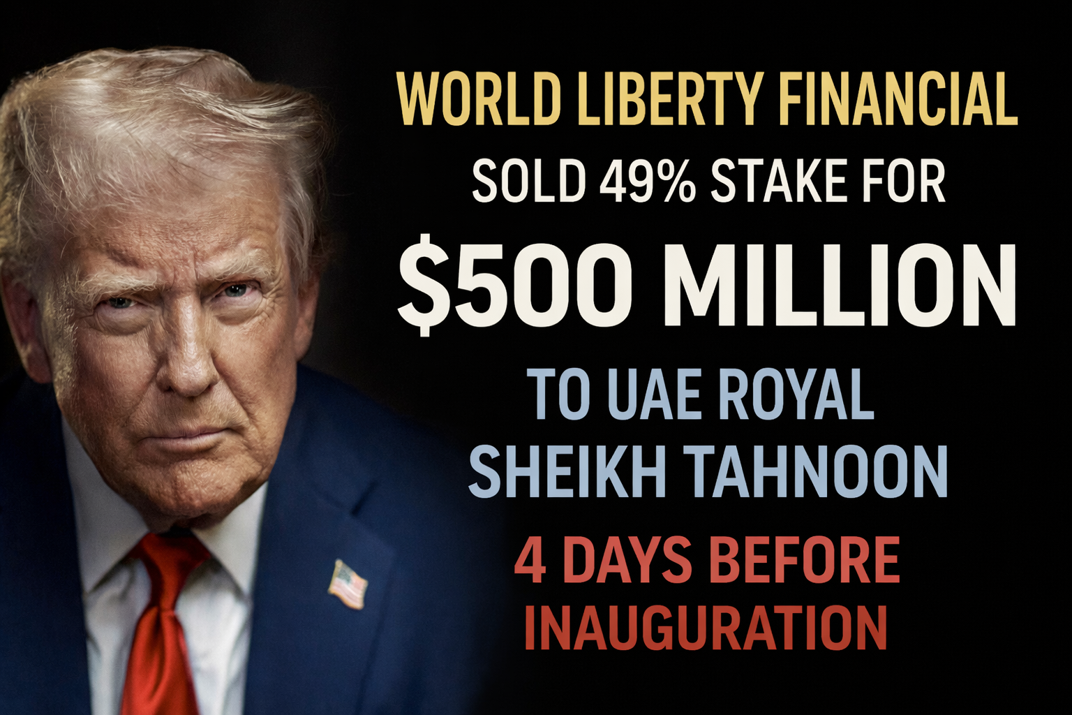 The Trump family’s cryptocurrency venture, World Liberty Financial, sold a 49% stake for $500 million to representatives tied to Emirati royal Sheikh Tahnoon bin Zayed al-Nahyan just days before President Donald Trump’s inauguration, The Wall Street Journal reported. The newspaper said as much as $187 million from the investment flowed to Trump family entities.