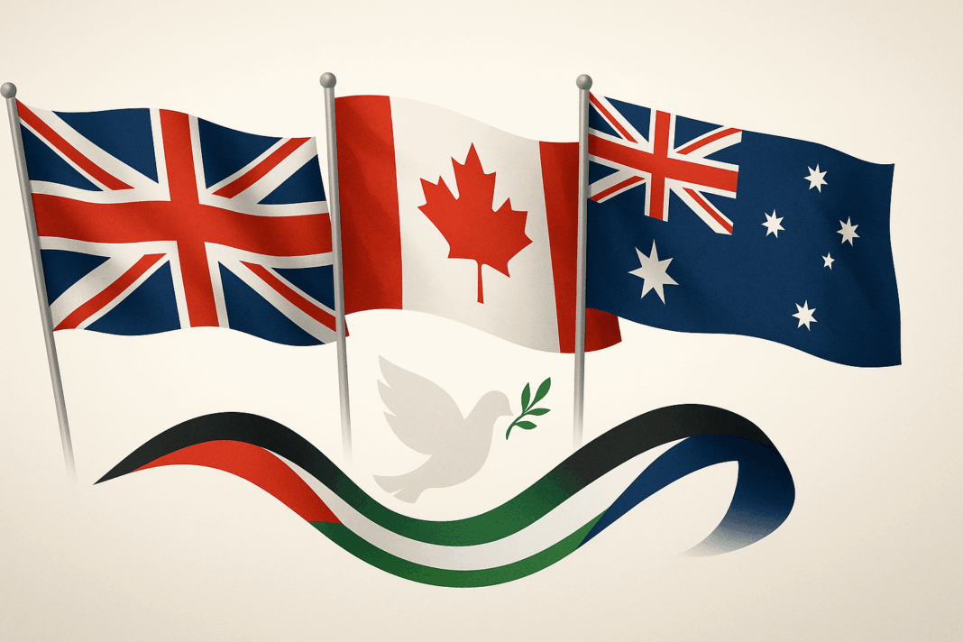 Britain, Canada and Australia formally recognized a Palestinian state on Sunday, a coordinated step their governments presented as a push to resuscitate a two-state solution in the context of Israel’s ongoing war in Gaza. The statements are a break with Washington and place three U.S. allies near at hand among over 140 states that already grant recognition.