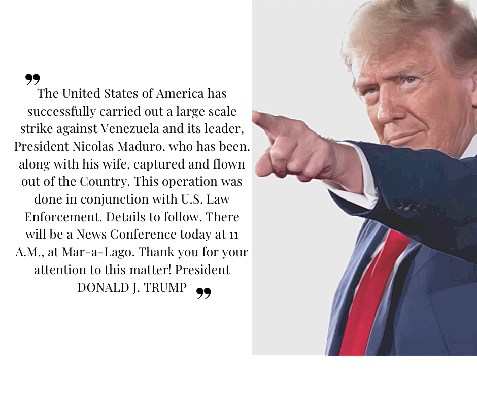 President Donald Trump claimed early Saturday that the United States carried out a “large scale strike” in Venezuela and that President Nicolás Maduro and his wife were captured and flown out of the country, according to Trump’s Truth Social post.