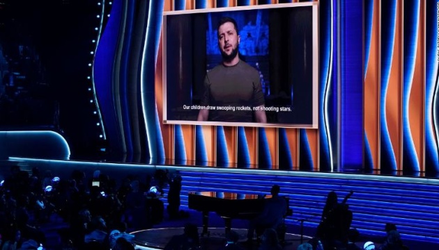 Ukrainian President Volodymyr Zelensky has made a video address at the 64th annual Grammy Awards early on Monday, April 4.